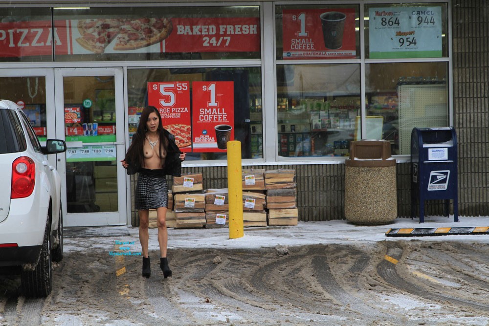 Brunette Flashing Medium Tits Public Exhibitionist Public Place