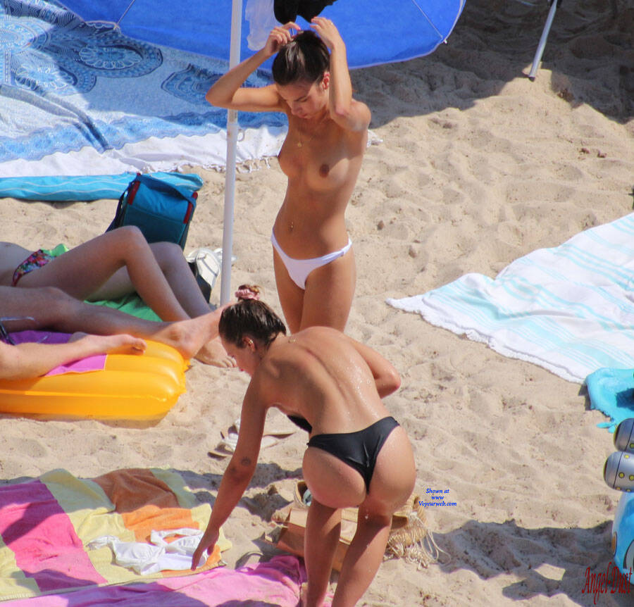 Topless Girls Beach Big Tits Brunette Outdoors Beach Voyeur